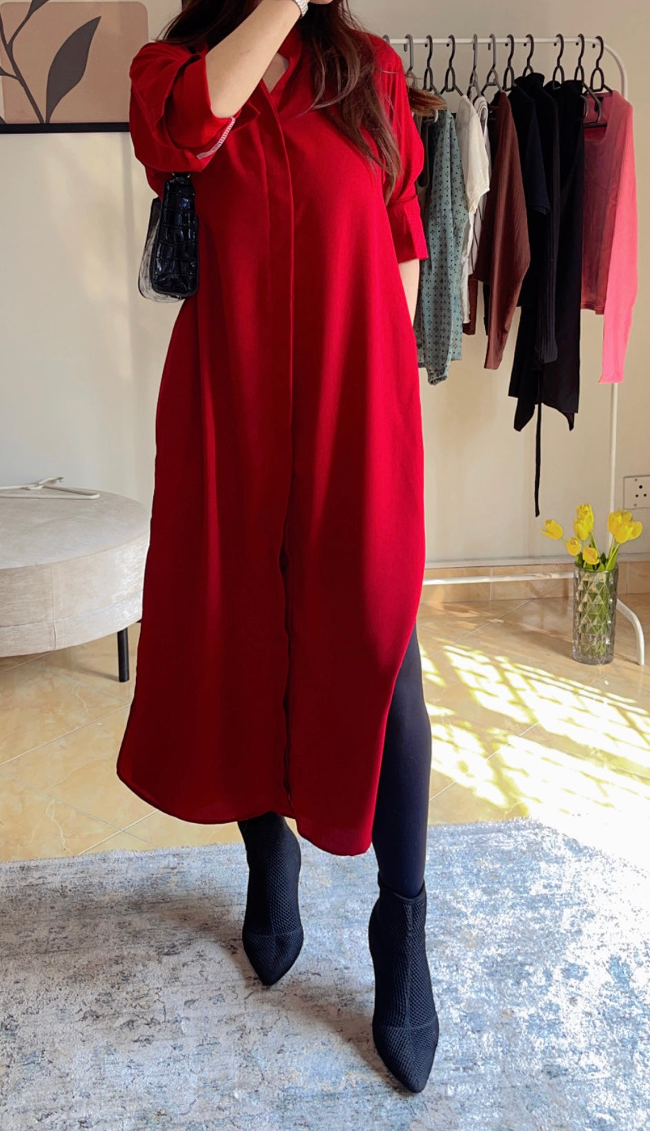 Maroon Button Down Long Shirt